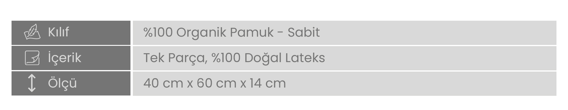Malzeme: %100 Doğal Lateks Blok (Tek Parça)